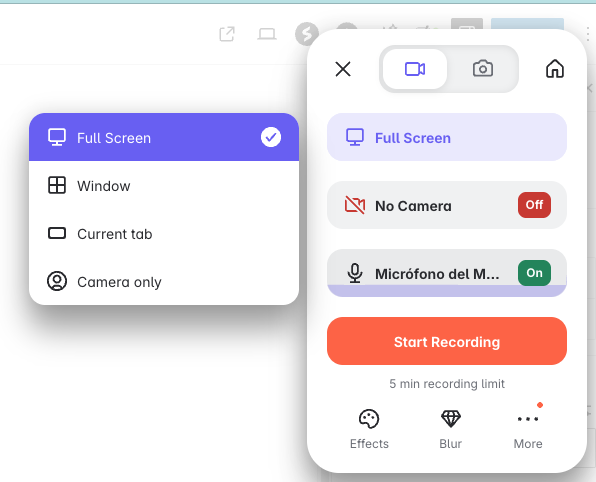 Paso 4: Una vez que hayas configurado estos pasos, da clic en Start Recording. Tienes 5 minutos para replicar tu problema.