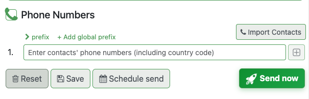 You can select a universal prefix from the User tab if all your numbers are from the same country. Remember that if you choose this option, you should import only the number, without writing the prefix again.