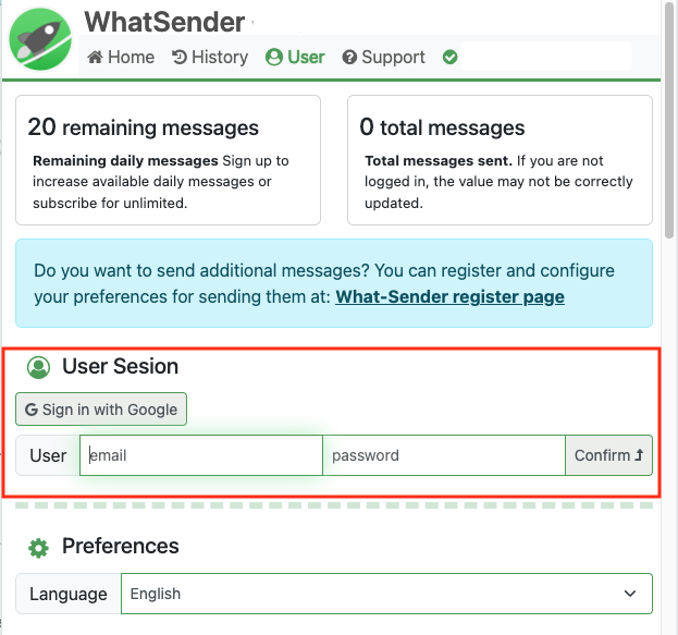 - We recommend registering with WhatSender or purchasing a subscription if you want to remove the limit of 40 messages per day.