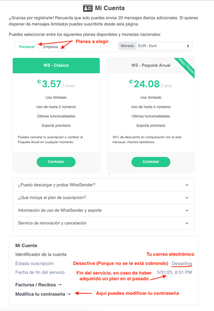 Si necesitas enviar más mensajes, puedes contratar uno de nuestros planes de suscripción, disponibles en modalidad mensual o anual.
