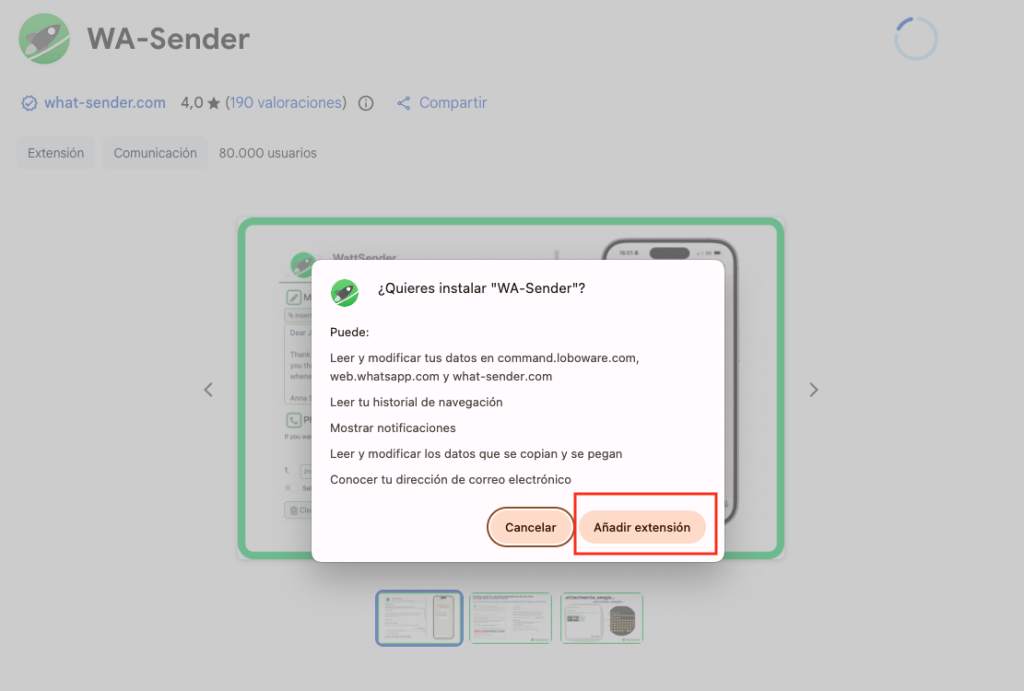 Haz clic en “Añadir a Chrome” o “Agregar a Escritorio”