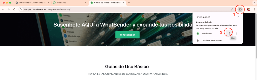 Puedes usar la extensión para enviar hasta 40 mensajes masivos gratis al día. Si necesitas ayuda para usarla, aquí tienes los tutoriales: https://support.what-sender.com/centro-de-ayuda/