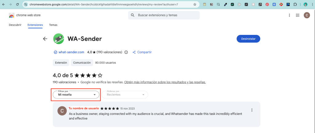 - Escribe tu opinión sobre tu experiencia con la extensión.